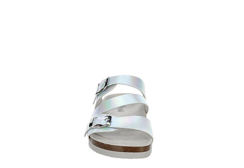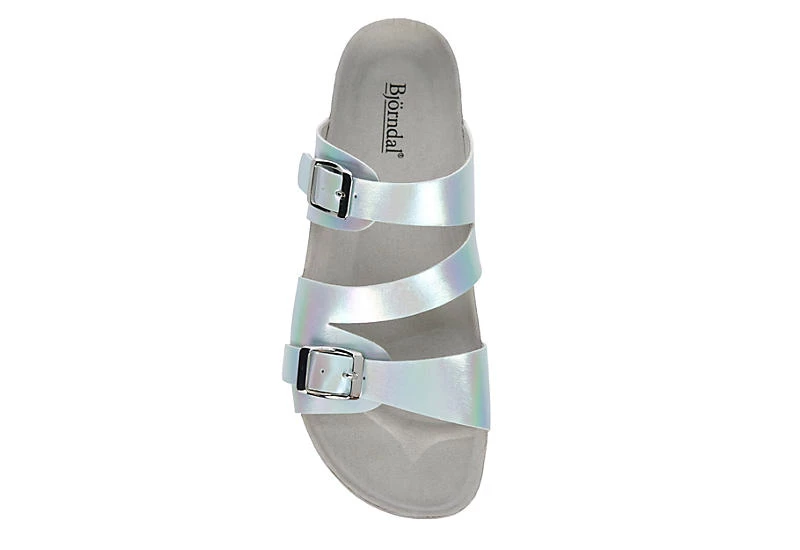 Do go for ordinary with the Bjorndal Delaney women’s footbed sandal. With an iridescent faux leather upper featuring dual buckle straps for extra style, this slide is a great additon to your wardrobe with a mirrorball feel that’s sure to please. The contoured footbed and cork midsole cradle your foot while the stable synthetic sole keeps you firmly down to earth.
