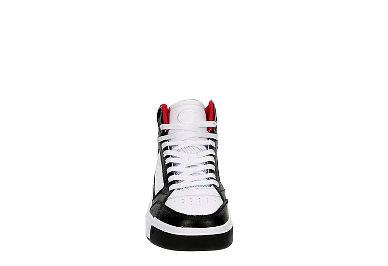 Get a trendy look for the court with the Drome Ventor Mid men’s sneaker from Champion. With a faux leather upper featuring a padded collar & tongue and an embroidered Champion script logo on the heel, this lace-up sneaker is a must-have addition to your wardrobe. The removable cushioned insole comforts your feet, while the sculpted rubber outsole provides excellent traction.Â