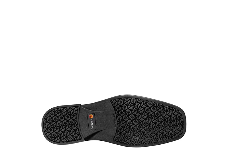 Dress sharp for work in the restaurant or hospitality industry with the Dockers Lawton men’s dress loafer. Featuring a polished faux leather upper featuring Stain Defender treatment that also protects against water, this slip-on shoe does that sleek, squared toe look rather well. The Fusion Footbed & Memory Foam insole cradle your foot in comfort while the outsole puts safety first with slip-resistance.