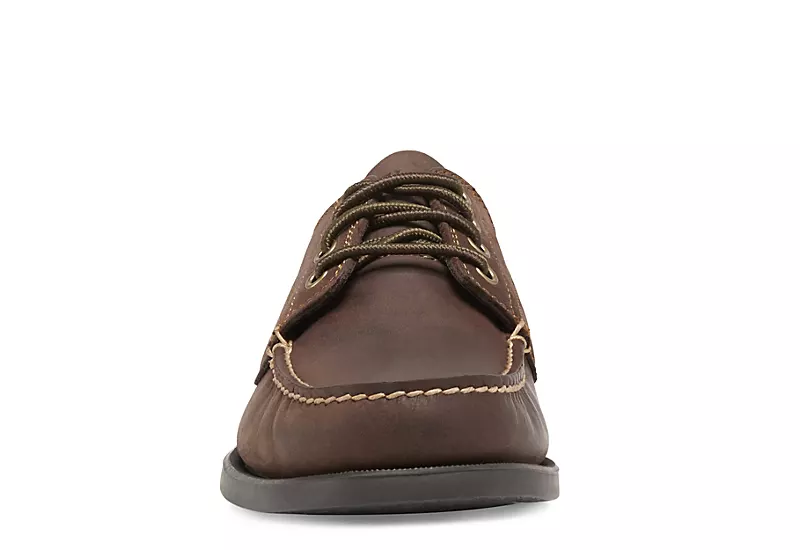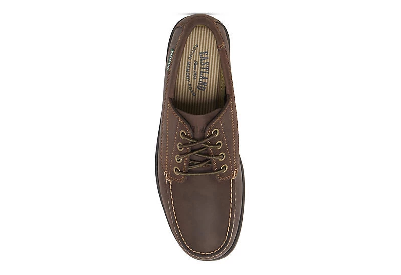 It’s all hands on deck with the Eastland Falmouth men’s boat shoe. With a leather upper and leather lining, this lace-up boat shoe also features premium stitching details. The fabric lined footbed soothes your foot while the rubber sole helps you handle the swells.