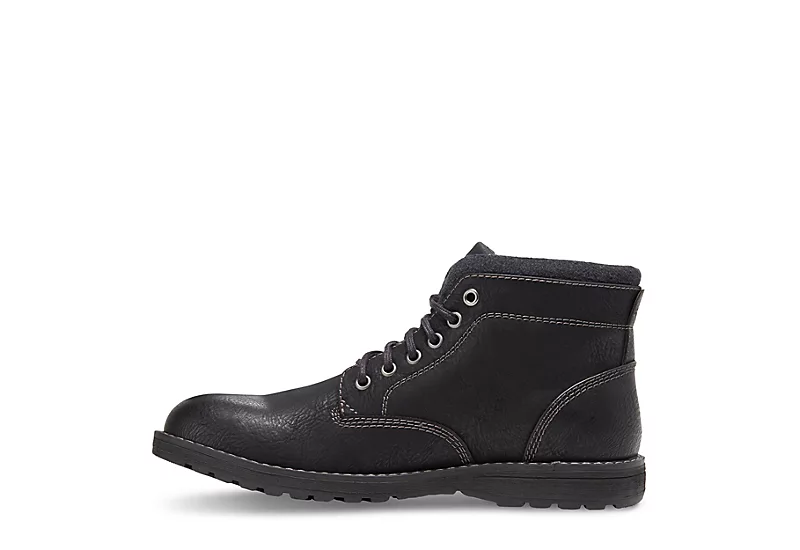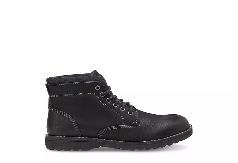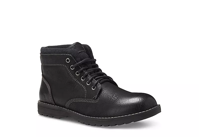 Take comfort in your street style with the Finn men’s chukka boot from Eastland. With a faux leather upper and padded collar, this lace-up chukka boot is great for facing the cold. The Memory Foam insole cushions your foot while the rubber sole helps you avoid slips.