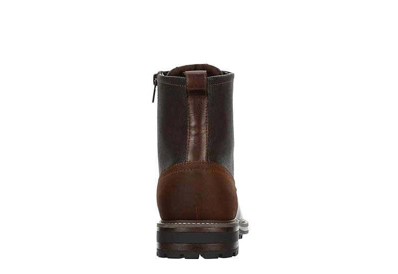 Dress up your rugged fall style in the James men’s boot by Franco Fortini. With a two-tone faux leather & textile upper featuring a cap toe, this inside zip boot also has a rear pull tab for easy enty. The lug outsole is durable, offering steady traction wherever you go. Â