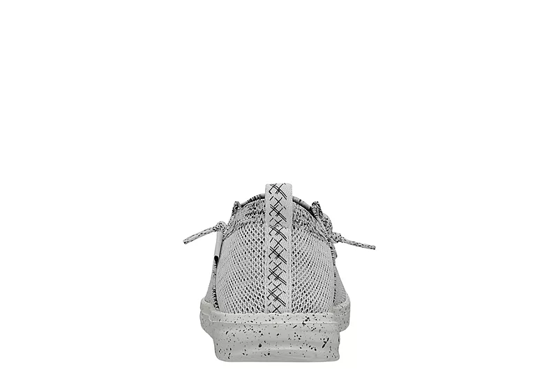 Step up your casual look with the HEYDUDE Wendy Halo women’s slip-on sneaker. With a two-direction stretch polyester-blend upper featuring Flex & Fold technology, this sneaker is machine washable for easy maintenance. The removable Memory Foam insole and leather lining offer ergonomic comfort and cushioning, while the ultralight outsole keeps you going all day.