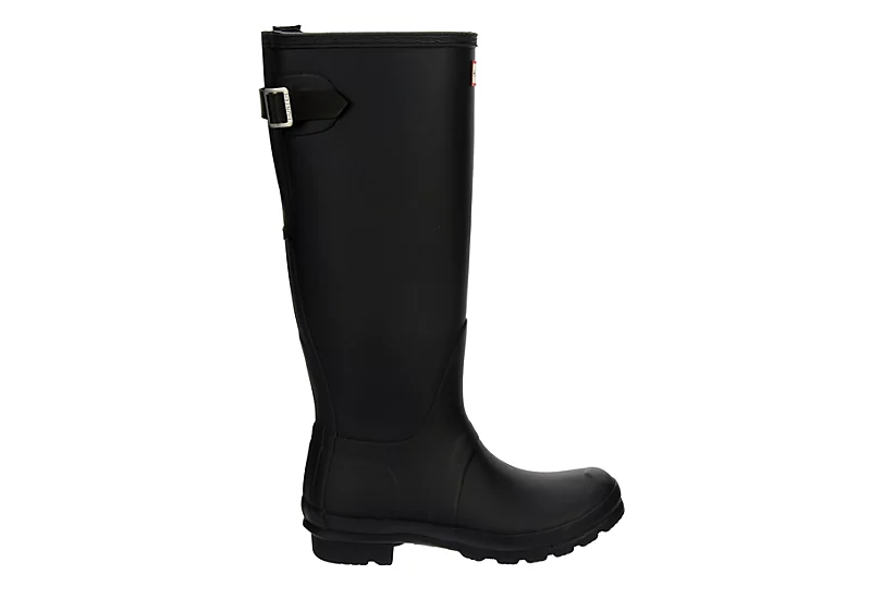 Flex your rain IQ in the Hunter Original Tall Adjustable women’s rain boot. With a handcrafted, natural rubber upper featuring a matte finish for waterproof style, this expandable gusset rain boot is flexible enough to accomodate wider calves. The polyester lining comforts while the rubber traction outsole has the signature Hunter Original tread.