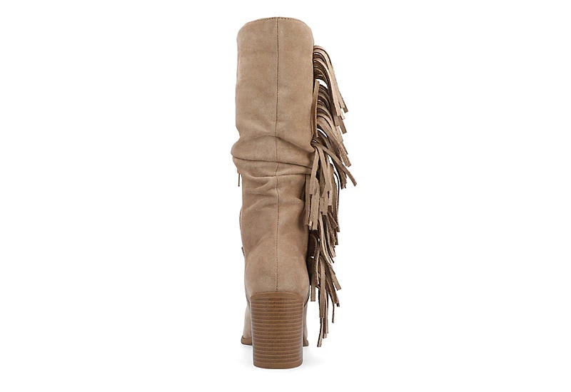 Journee Collection Womens Hartly Fringed Extra Wide Calf Dress Boot – Taupe
