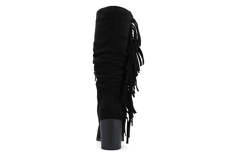 Journee Collection Womens Hartly Fringed Wide Calf Dress Boot – Black