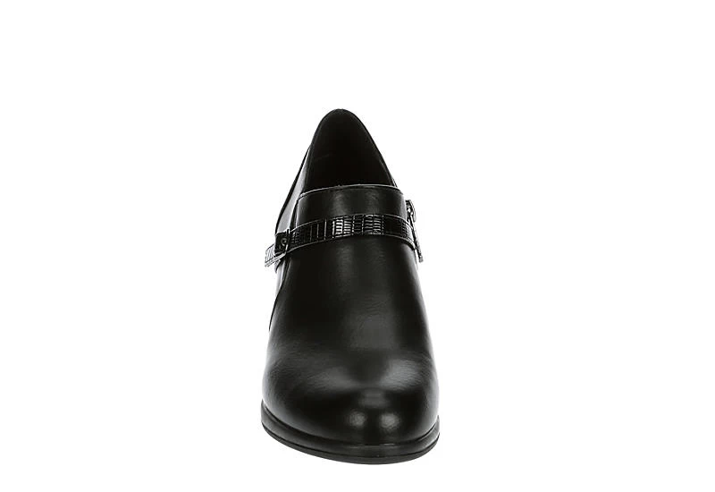 Get ready with your casual fall style in the Ellory women’s bootie from Lauren Blakwell. Featuring a faux leather upper with a decorative snakeskin print buckle strap, this inside zip ankle boot looks great with dark jeans and a light trench. The cushioned footbed comforts your foot while the 2″ block heel offers stable lift.