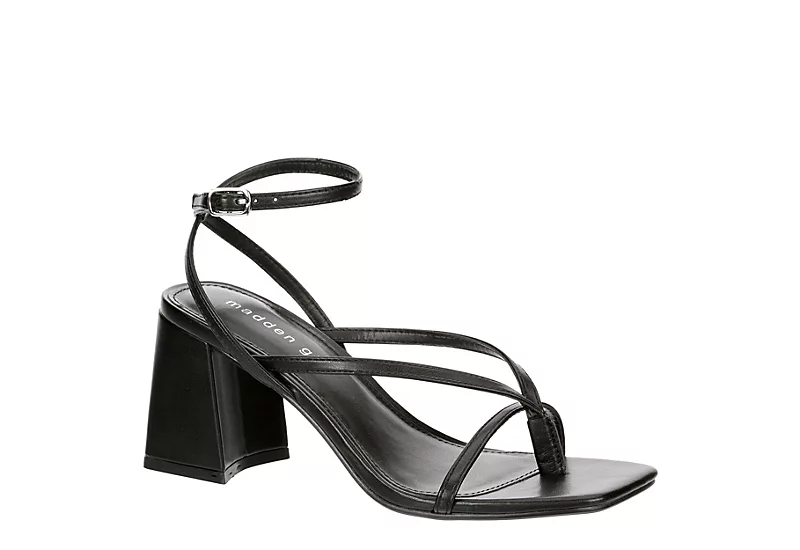 Complement your date night ensemble with the Marvel women’s sandal from Madden Girl. With a faux leather upper featuring an adjustable wrapped ankle strap and a thong toe post, this flattering sandal, with its squared-off open toe, will have heads turning everywhere you go. A lightly padded footbed comforts your feet, while the elevated block heel adds stunning lift.