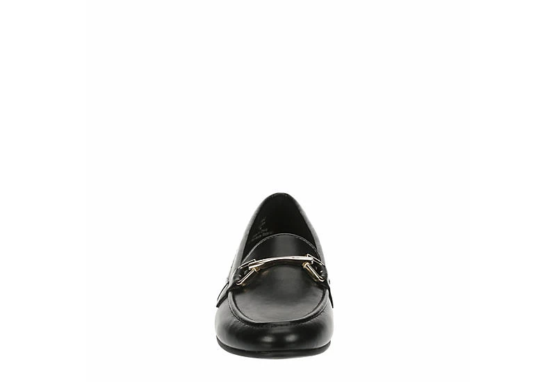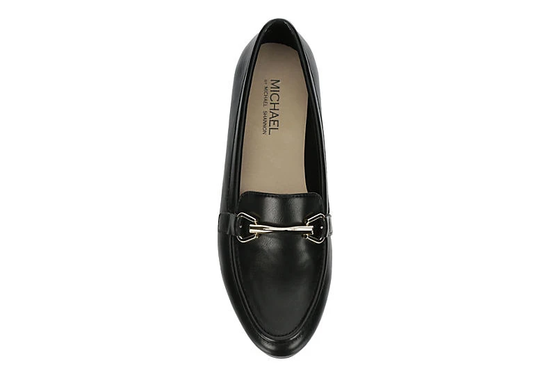 Get back to work in style with the Silvana women’s loafer by Michael by Michael Shannon. With a faux leather upper featuring a metal bar accent, this slip-on loafer goes well with tweeds, sweaters or casual denim. The cushioned footbed and sturdy sole stand up to time spent on your feet. Â