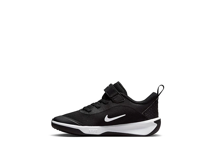 Keep your kid ready for any indoor sport opportunity in the Nike Omni Multi-Court boys’ basketball shoe. With a breathable mesh & synthetic upper featuring a reinforced toe for durability, this lace-up sneaker is wide around the heel and forefoot. The foam footbed promotes natural movement while the rubber outsole is non-marking.