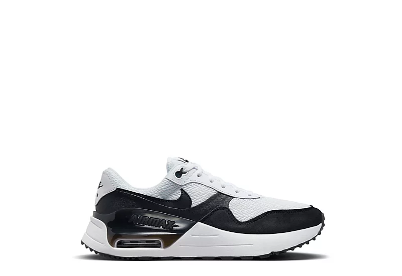 Throw it back to the ’80s with the Nike Air Max SYSTM men’s sneaker. With a breathable mixed material upper for sleek durability, this sneaker is a modern update on a design meant for performance running. Visible Air technology & Max Air cushioning offer lightweight comfort and support, while the rubber outsole provides exceptional traction.Â