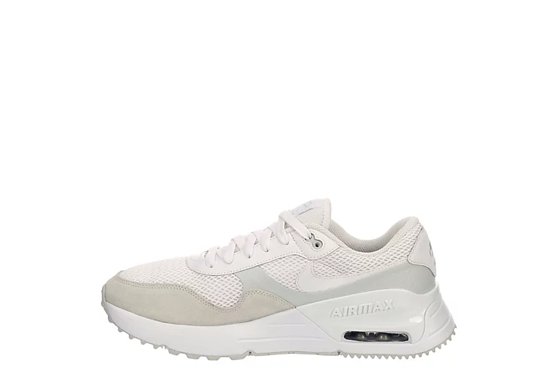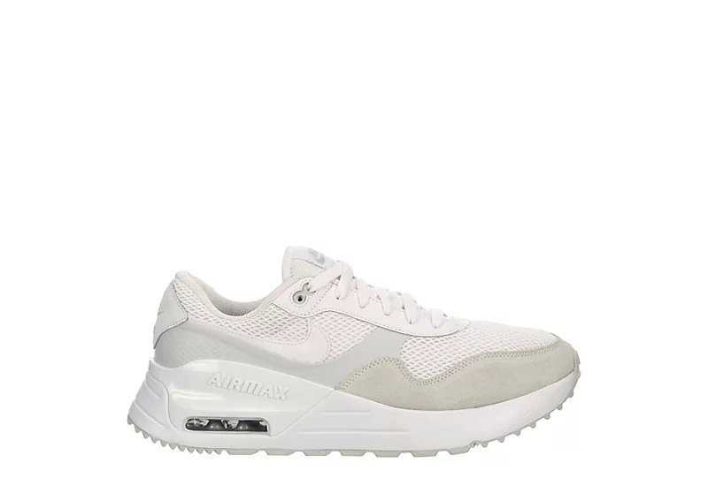Throw it back to the ’80s with the Nike Air Max SYSTM men’s sneaker. Featuring a breathable mixed material upper for sleek durability, this sneaker is a modern update on a design meant for performance running. The visible Air technology & Max Air cushioning offer lightweight comfort and support with every stride.Â