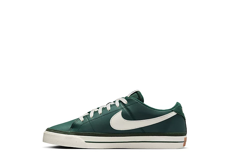Streetwise, but classic the Nike Court Legacy Low men’s sneaker upholds tennis history with modern style. With a leather upper and canvas trim around the midsole for flair, this lace-up sneaker also features intricate needlework to enhance its sleek construction. The herringbone pattern on the rubber outsole ensures great traction on the court or off.