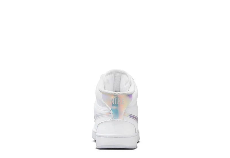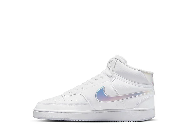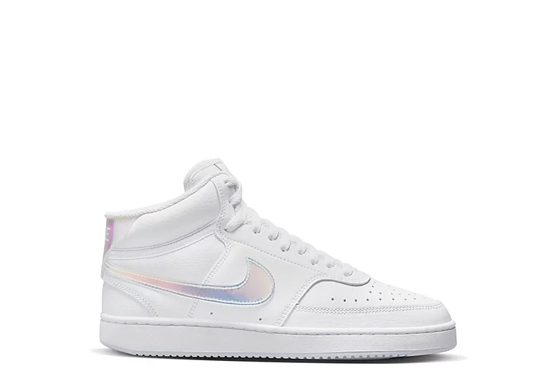 The Court Vision Mid sneaker for women from Nike features the same combination of retro construction and modern performance as the low top. It’s the perfect shoe on or off the court. Call back to the 80s with the perforated leather upper and deep traction outsole. The nike swoosh keeps the classic vibe going.Â