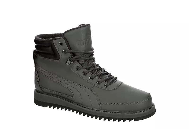 Brave the elements while still looking hip in the PUMA Desierto V2 men’s lace-up boot. Equipped with all-weather PureTEX weatherproof technology and a soft fuzz-lined interior, you’ll be ready to roll with the snow and ice. This leather upper boot with a rubber traction outsole can handle the weather but looks equally as stylish when inside.Â