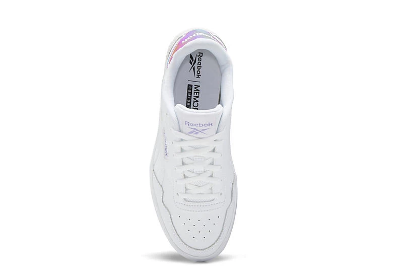 Take on the day in style with the Reebok Court Advance Bold women’s sneaker. With a leather upper featuring a colorful iridescent accent on the heel, this lace-up sneaker effortlessly have you ready to hold court like a queen. The OrthoLite sockliner cushions your foot, while the foam & DMX Microbubbles add extra support.