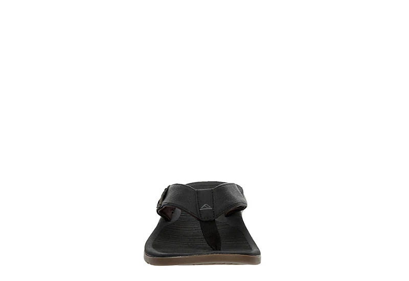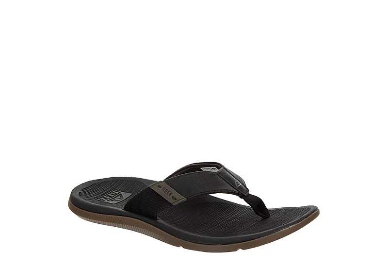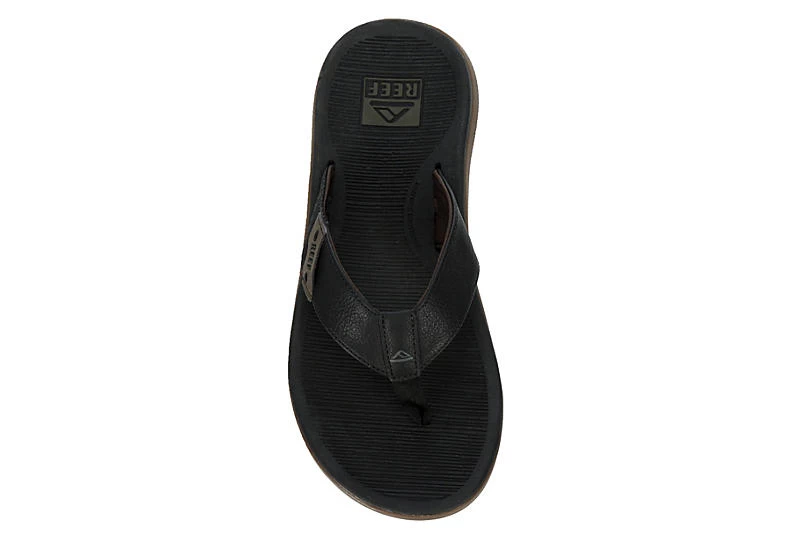 Leave your worries behind and just head for sun in the Reef Santa Ana men’s flip flop sandal. With a synthetic upper and padded jersey lining for slip-on feel and comfort, these thong sandals are perfect for laid-back days. The compression molded EVA footbed cradles your foot while the rubber cupsole provides traction and stability.