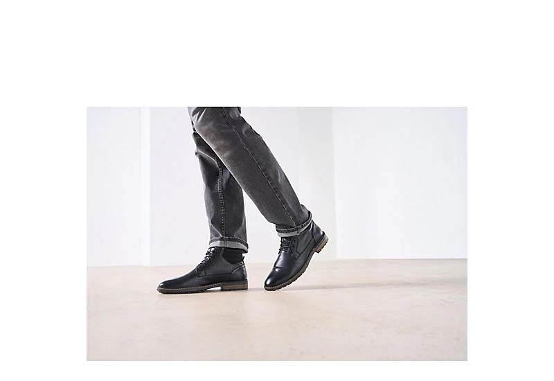 Jeans never looked better when paired with the Parker men’s boot from Restoration. With a faux leather upper and lugged sole, this lace-up boot also features a stacked heel and stitching details for a distinct, street-style look. The lightly padded footbed and rubber traction sole will comfort and stabilize your foot as you head out for your weekend.