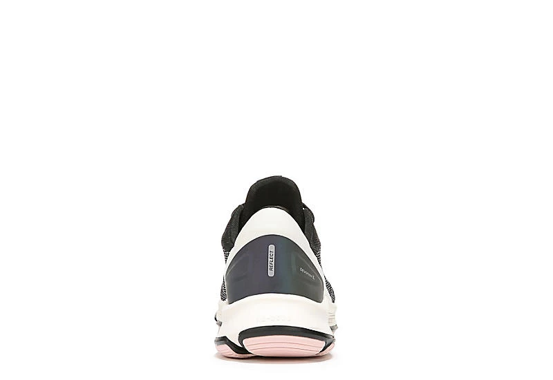 Stay active with the Devotion X women’s walking shoe from Ryka. With a breathable mesh fabric upper featuring lace-up closure for a secure fit, this shoe also has a padded collar & tongue and RE-ZORB® cushioning for impact protection. An Anatomical Precise-Return footbed and ACTIVfoamâ„¢ EVA midsole support your feet, while the rubber outsole provides excellent grip.