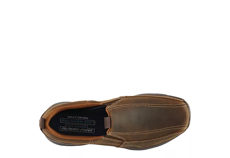 The perfect blend of style and comfort, the Dockland men’s shoe by Skechers features a smart slip-in silhouette and a luxurious leather construction. Its memory foam footbed offers custom cushioning.