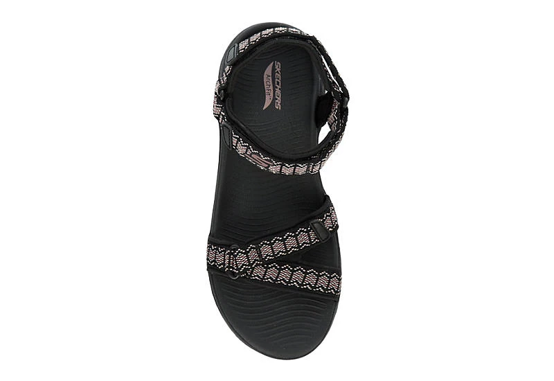 Like a breath of fresh air, the Skechers GO WALK Arch Fit – Affinity women’s sandal, add life to your outings. With a geo woven mesh fabric upper featuring a river sandal vibe, this machine washable sandal is completely prepared for summer adventuring. The Skechers Arch Fit footbed & ULTRA GO cushioning cradle your foot in comfort while high-rebound Comfort Pillars add extra support for rough going.