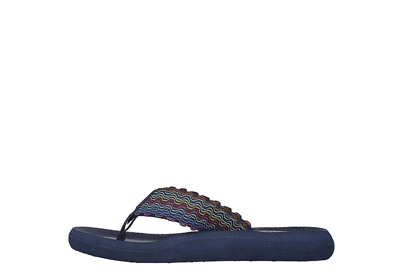 Add a pop of color to your relaxed style with the Skechers Cali Asana women’s flip flop sandal. You’ll feel so supported as the Yoga Foam cushioned comfort footbed creates a light and relaxing step. The cool-looking woven fabric strap will provide a unique touch to your look.Â