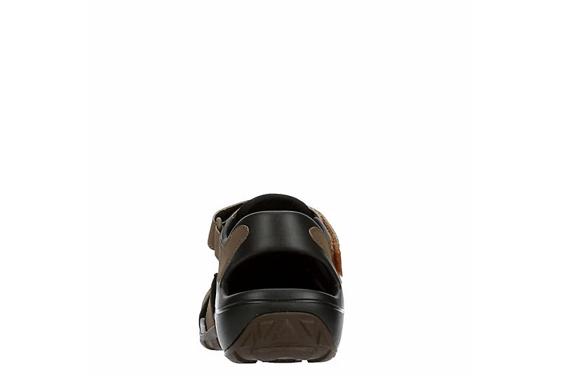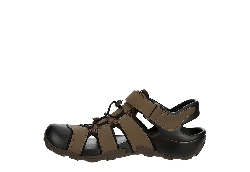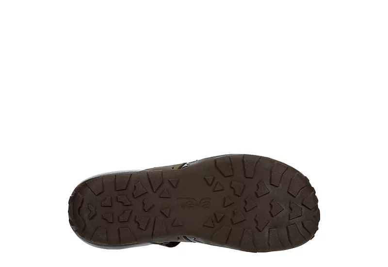 Get in tune with adventure in the Flintwood men’s outdoor sandal from Teva. This sandal, crafted from recycled materials, features a breathable mesh and synthetic upper with a hook-and-loop strap and bungee lacing for an easy yet secure fit. An EVA footbed and IMEVA midsole with a nylon shank comforts and supports your feet, while the rubber outsole provides outstanding traction.