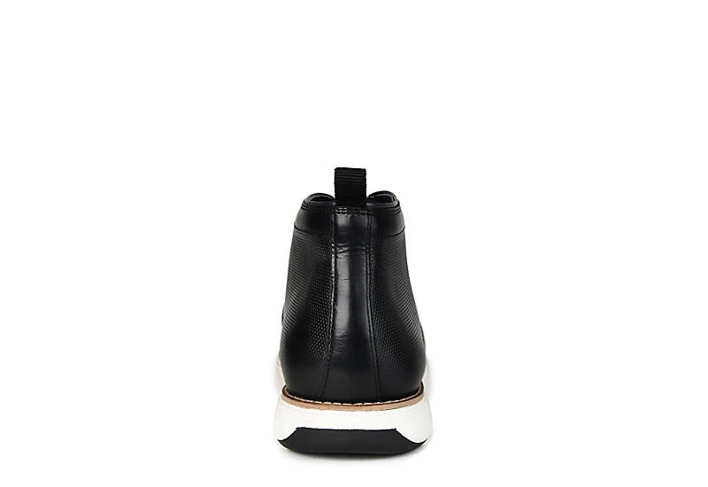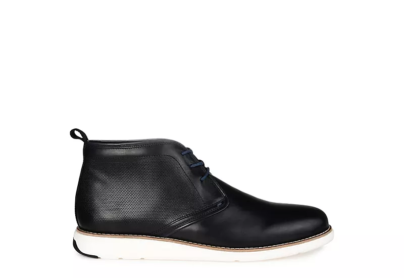 Relax and savor your weekend in the Cutler men’s chukka boot from Thomas & Vine. Its authentic leather with embossed back panel shows pure style, while the three-eye lace up closure and heel tab add a casual boot kick. You’ll stay comfortable for the duration with the Tru Comfort Foam footbed and flexible EVA outsole.
