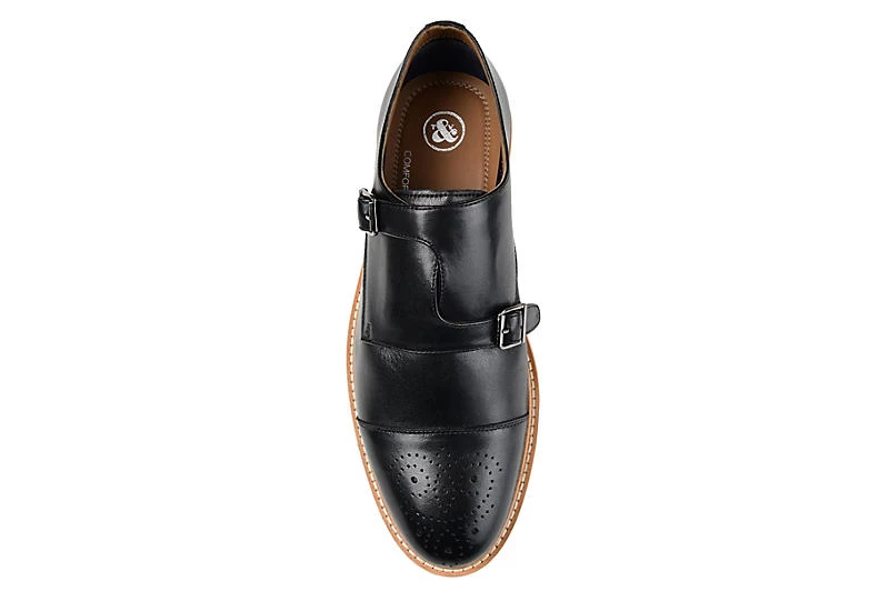 No one can deny you have impeccable taste when you step out in the Ransom men’s dress shoe from Thomas & Vine. The interlocking buckle strap, medallion toe and contrasting white sole serve as statement pieces, complementing suits, dress pants, sport coats and more. The genuine leather upper shapes the look and the Tru Comfort Foam™ footbed offer the perfect amount of support.