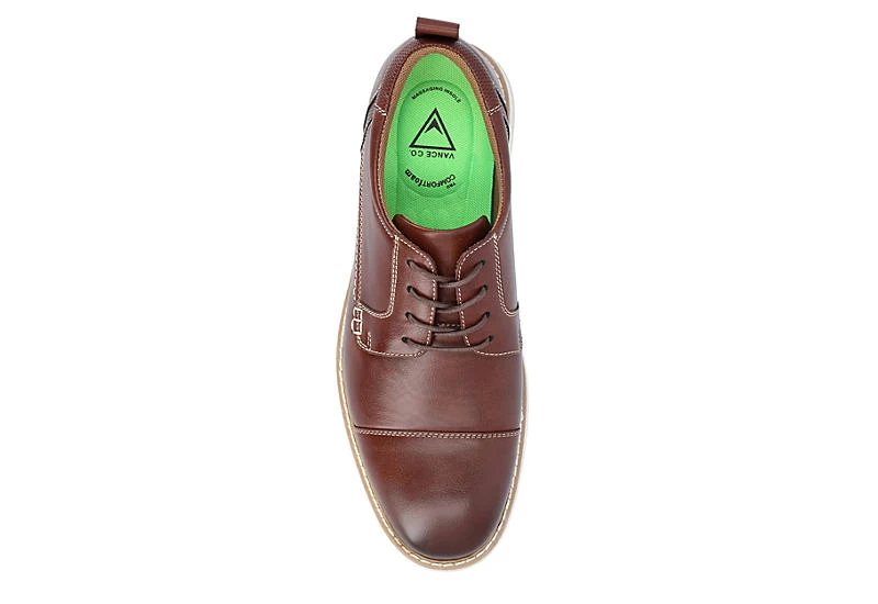 Fulfill all your obligations in the versatile Jedd men’s oxford from the Vance Co. With a vegan faux leather upper featuring a suave cap toe for extra appeal, this lace-up shoe also has embossed & stitched accents to take it a step up from simply casual. The foam footbed cushions every step while the durable outsole offers athletic-styled traction.