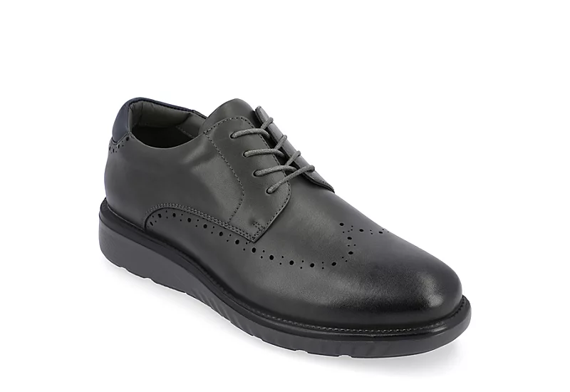 Style meets comfort with the Ramos men’s oxford from Vance Co. With a vegan leather upper featuring a padded collar & tongue for comfort. this lace-up derby oxford also has a wingtip design and insert goring. Thanks to the Tru Comfort Foam footbed and lightweight EVA outsole, every step feels better than the last.