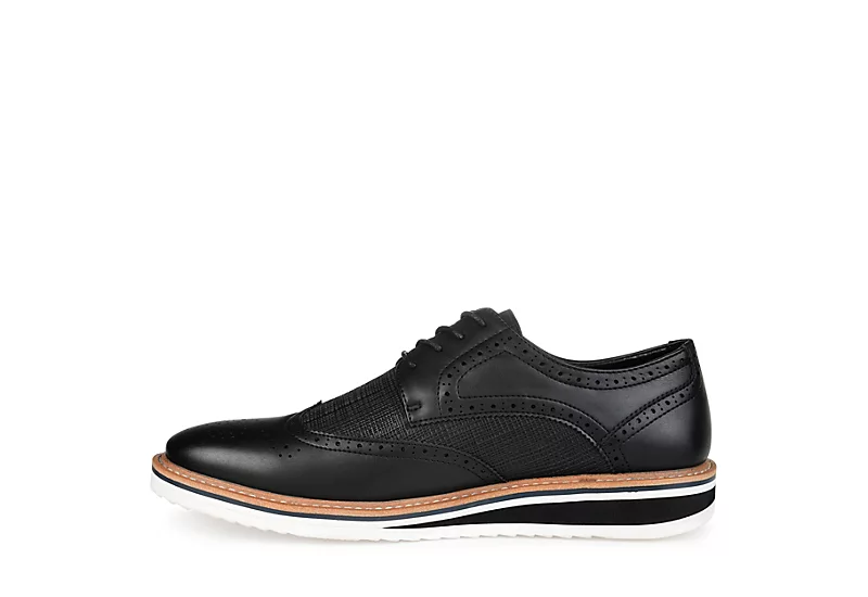 Fashionably speaking, you’ll never look bad in the Vance Co. Warrick Derby men’s dress shoe. With a faux leather upper, wingtip and brogue details for added style, this lace-up shoe will dress up any suit or business casual ensemble. The Memory Foam footbed comforts your foot while the synthetic sole gives you the stability to walk with confidence.