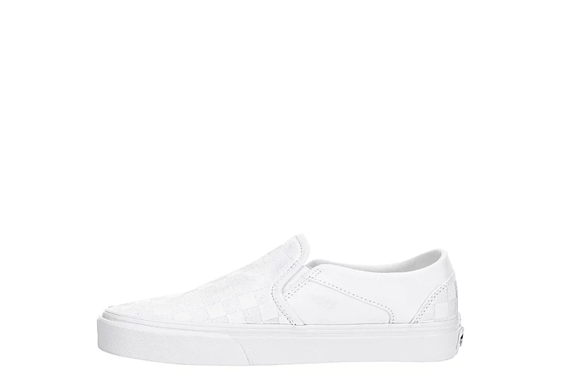 From its streamlined, slip-on design to the classic checkered print, the Vans Asher Check men’s slip-on is laid back and authentically cool. The canvas upper won’t weigh you down when you’re trying new tricks on the board.
