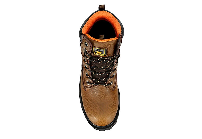 Make work feel less hard in the Work Master Mt. Prospect men’s work boot. With a leather upper and padded collar & tongue for extra comfort, these lace-up boots also boast metal eyelets for security in rugged conditions. The cushioned insole comforts your foot while the traction outsole provides stability to get the job done.